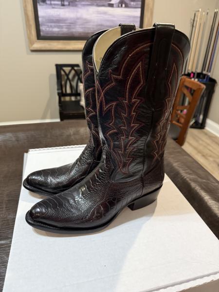 J.B. Dillon / Burgandy Ostrich / sz10D / Used Excellent Condition. $150.00 OBO Knee problems.. tried to wear a few times but trouble wearing boots with heel. Thanks for looking. |