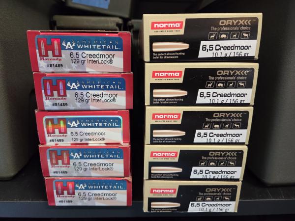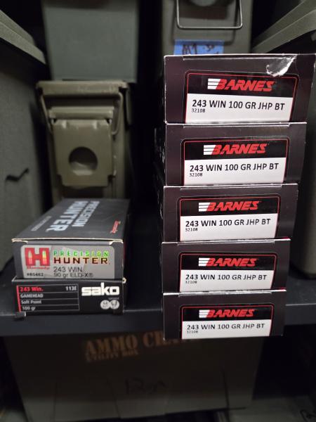 6.5 creedmoor Five(5) boxes of Hornady American Whitetail 6.5 Creedmoor 129gr interlock---$20/box, $100 for all Five(5) boxes of Norma Oyrx 6.5 Creedmoor 156gr---$40/box, $200 for all If you're not familiar with the Norma Oryx bullets, it's like coreloks on steroids. .30-'06 Springfield Three(3) boxes of Norma Bondstrike 30-06 180gr---$35/box $105 for all One(1) box of Norma Whitetail 30-06 150gr---$20 One(1) box of Sako Super Hammerhead 30-06 180gr---$30 .243 Winchester Five(5) boxes of Barnes .243 100gr JHP BT ---$20/box, $100 for all One(1) box of Sako Gamehead 100gr---$30 One(1) box of Hornady Eldx 90gr---$35 Text 270-217-3975 |