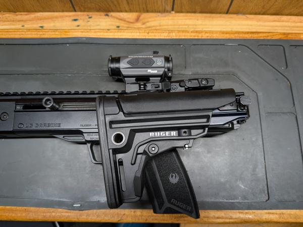 | Ruger 5.7 Carbine in very good condition, has a threaded barrel, folding stock, metal VFG, two 20 round Ruger mags, flip up sights. No box or manual, optic NOT included. $550 firm or trade towards Charger version of gun. Must meet within reasonable distance of Henderson KY. Legal KY residents only. 2704469231 |