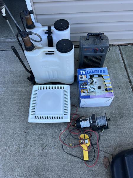 Garage clean out: Chicago which with wired remote works great, two Craftsman 20v backpack sprayers (one with sprayer hose), Honeywell adjustable heater works great, old tv/lantern in box (brand new, never opened) and a exhaust fan. Price is $50 for everything listed. Call/text 270-564-0235. I’m located in Paducah, near Lone Oak. God bless! |
