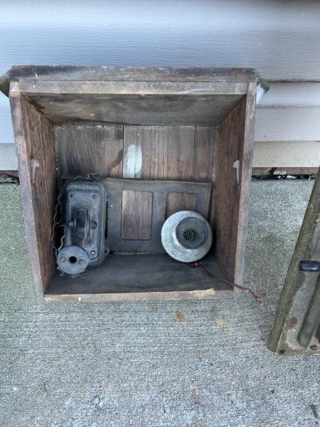Very old phone that hangs on wall. I do not know the age but know it is old. The crank works. This would make a great decoration. I believe the pic shows the phone upside down. Price is $75 or best offer. Call/text me at 270-564-0235. I live in Paducah, near Lone Oak. God bless! |
