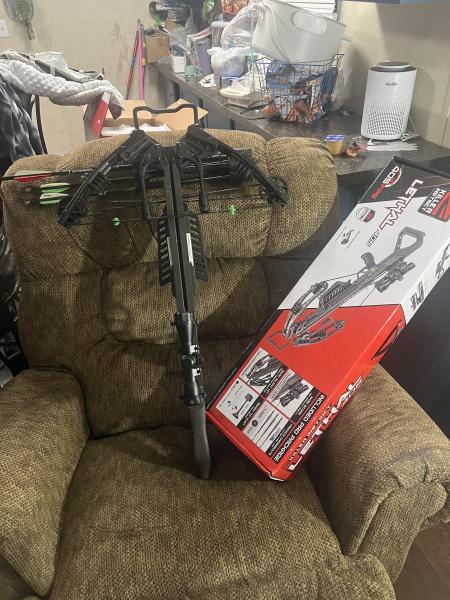 | I have a Killer Instinct Lethal 405 Crossbow. It comes with two bolts and a de-cocking arrow. You will need a draw string. $250 obo call or text 270-562-2493 |