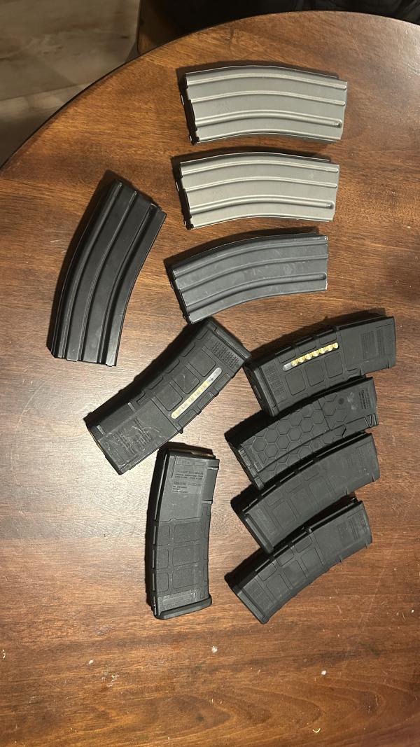 | Assorted AR15 Mags come loaded and ready to shoot Some Magpul some GI Mags All Loaded with mostly Green tip 5.56 ammo -2 Duramags that I bought direct from BCM. -1 Okay industries (who makes the mags for Colt) -1 FN mag -3 Magpul standard mags -1 Hexmag -2 Magpul window mags Total of 10 $20/ea. Text 270-836-8870 |