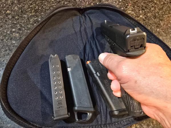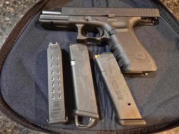| Glock 17Gen4 with 2 G17 mags, and an extra pmag for the Glock 17 |