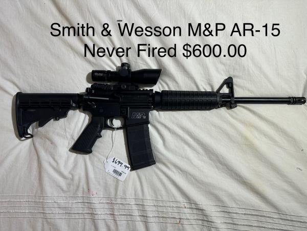 | Up for sale is a good like new Smith & Wesson M&P AR-15 223/556 with red dot scope. Never fired and in mint condition. Call or text 2seven0-2nine3-8two8five. |