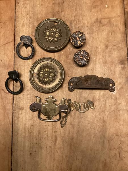 | There are old hinges, drawer pulls and knobs, bales for old jars and miscellaneous. $30 for all. If interested please call 270-928-2175 or text 270-349-6866. |