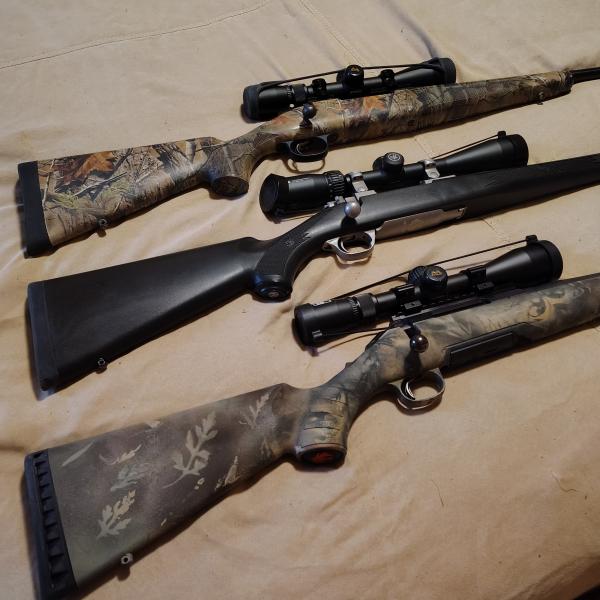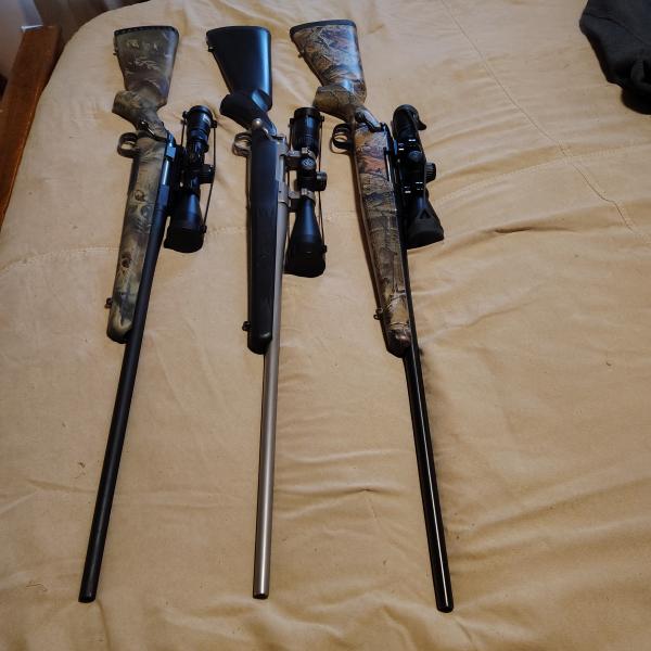 | Marlin xl7 25-06 with 3x9x40 Nikon Buckmaster $600.Ruger 77 Stainless .243 with vortex crossfire 3x12x42 $1050.Ruger American 308 with 3x9x40 buckmaster scope . trigger job filled weighted balanced stock $600.All three ready to hunt.270-226-9315 |