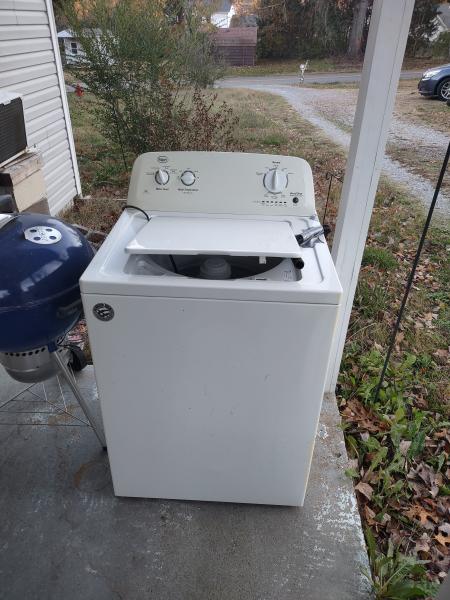Got this Roper washer for sale. Had it for about 5 years. Getting rid of it because there isn't room for a washer and dryer in our laundry space now so we had to get a laundry center. Have never had any issues out of it and it worked just fine when we took it out. There is a dent in the side from when I bought it but it doesn't affect functionality. Also we never washed anything crazy in it like dog feces or mud. Just clothes from the workday. Selling for $150. If interested text me at 270-994-1353 thanks.