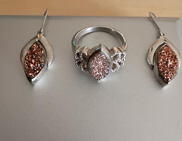| Rose Titanium Druzy stone set in .925 Sterling Silver. Made in India. Believe it to be in between a size 9-10. In the Anna area. Call or text 6186975033 |