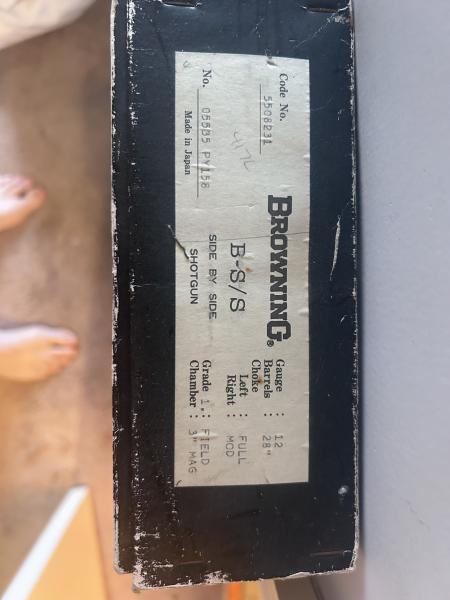 | Browning BSS 12 Gauge Field Grade Side-by-Side • 12 gauge, 3” magnum chamber • 28” barrels, Full (L) and Modified (R) fixed chokes • Field Grade, made in Japan • Original factory box and packaging included • Near Mint Condition • Serial No: 05555 PM158 Price: $1,300 (Private sale norm: $1,600-1,700) |