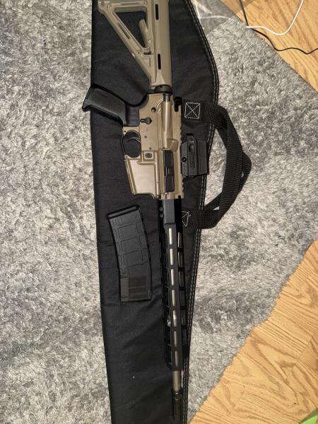 | .45 comes with 2 7round magazines shot a couple tomes, total of 100 rounds put through it. Sig Comes with 1 30round magazine, 100 rounds put through it as well. Asking 950 for both or 700 for Ar and 300 for the .45. |