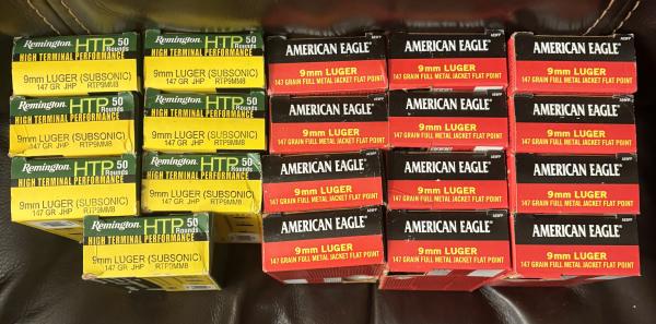 | 950 rounds total. All subsonic 147gr 350 rounds are hollow points and the rest are fmj flat point $350 obo for all of it 270-366-8356 |