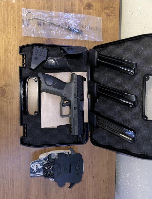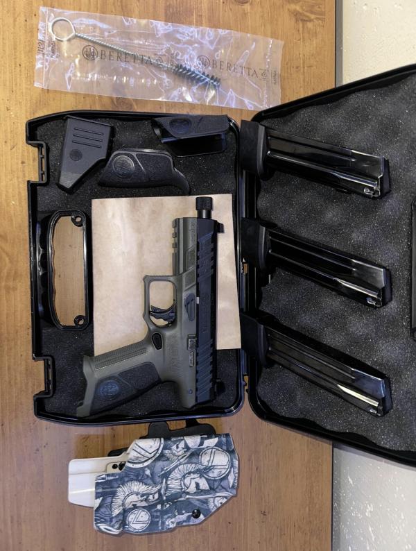 | Like new Beretta APX-A1 Tactical. Have roughly 150-200 rounds through this firearm. Works flawlessly and is in great condition. Have no issues with it, just looking to sell in order to buy a new carry gun. Comes with We The People OWB Paddle holster, 3x 21 round magazines, factory grip changes, mag loader and original carry case. If you have any questions please text or call. 270-816-6449 Am willing to trade for Glock 43x MOS in good or like new condition. |