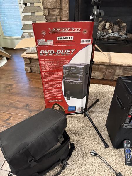 | Set of music items 1. DVD Duet Karaoke Machine (this retailed for $609) 2. 2 Microphones with carrying case 3. Microphone stand 4. Music stand with carrying case 5. All cords, remote, and instruction book $250 cash Call or text 270-703-3114 |