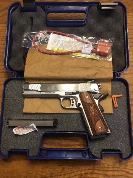 | FOR SALE Smith & Wesson 1911 E-Series (.45 ACP) • New in Box • Stainless finish • Factory wood grips • Skeletonized trigger & hammer • Smooth action and great shooter • Includes: 2 mags + original case Priced @ $1,050 cash!! Call or text Randy @ 270-210-4781. |