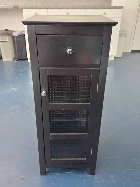 | I have a 15 inch × 14 inch x 36 inches tall black cabinet for sale the cabinet has 1 drawer and 1 shelve. Good small storage unit. Call (270) 210-1111 Thanks. |