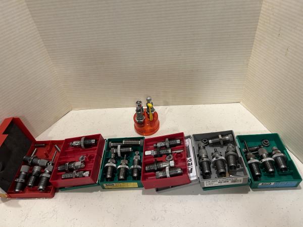 Lee -- 4die set - 9mm - Price $30 Hornady Custom Grade -- 4die set - 357Sig - Price $30 RCBS -- 5die set 38 Special / 357 - Price $30 RCBS -- 3die set - 44Mag - Carbide Sizer - price $35 Lee -- 3die set - 40S&W - Carbide Sizer - Price $35 Lee -- 3die set - 9mm - Price $20 |
