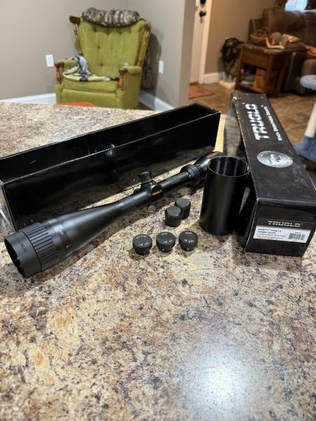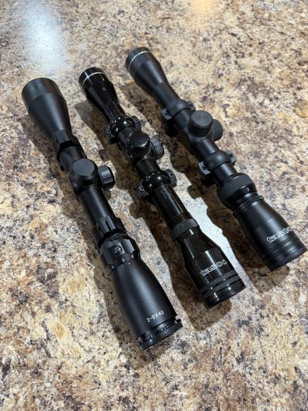 | 4 scopes for $150 total. Truglo 4-16x44 in box with sunshade and custom turrets for .22-250, .223, .308 Tasco 4x32 with rings Tasco 3-9x32 with rings Store brand 3-9x40 with rings call or text to: 270/206-1581 |
