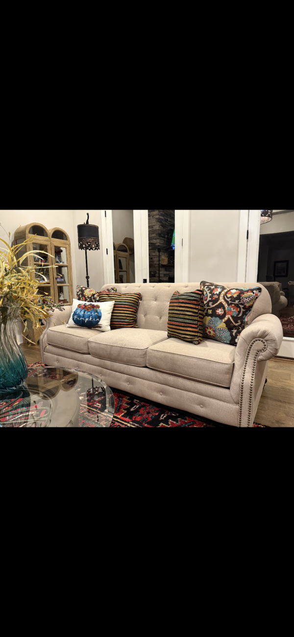 | Traditional Tufted Back Sofa with nailhead trim, (91" long x 39" deep x 39" high, 24' back. Pillows in the picture are not included. |