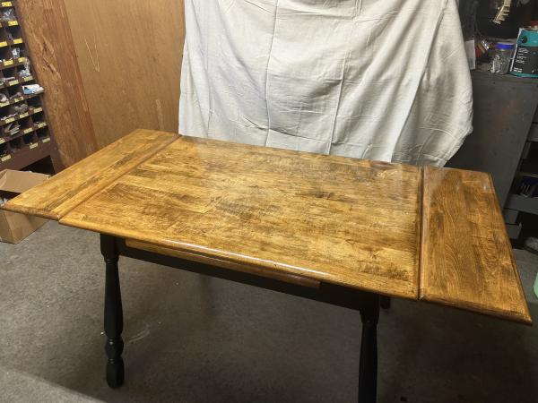 | I have a small table for sale for 75.00. Table is 29 1/2” wide x 40 3/4” with extensions pushed in and 59” with them extended. Call or text 270-703-5522 |
