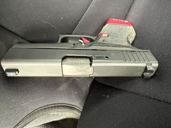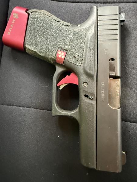| Glock 43 in original box comes with 3 mags 2 are Hyve extended mags, Hyve Monarch Trigger, Hyve Extended Mag Release, Hyve Rear Cover Plate, Glock Store Tungsten Guide Rod, Trijicon Night Sights, Stainless pin kit. Has been fired very little, only wear is from being holstered. Have all the OE parts that have been replaced in box as well. Have 7 boxes of ammo to go with it. Txt 270-816-2931. |