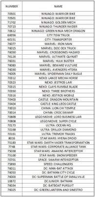 | We have over 40 sets of Legos available. The list are the larger ones. Will sell individually or as a lot. As of 11-30-25, 14 of these sets have been broken down and repackaged. All of these have the box and manual. There are many more smaller sets plus hundreds of pieces not in a set that will be included. The pics are of some of the assembled sets. These are from a smoke free home. Daily Bugle has sold |