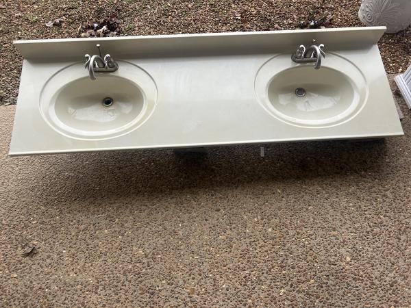| BATHROOM VANITY DOUBLE SINK WITH 2 FAUCETS IN GOOD CONDITION. $150 270-559-7025 |