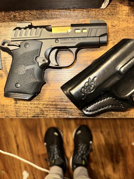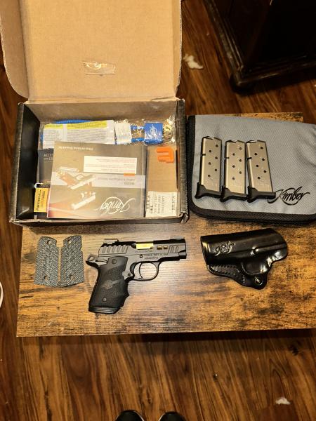 | I have for sale a very nice, like new, Kimber Micro 9 Rapide package deal. Pistol is in “Like New” condition. The Micro 9 Rapide edition comes with night sights and ambidextrous safety. It has Hogue grips installed on it but also comes with the original grips. Package includes original box and all goodies that come with it, a Kimber zip up pistol bag, 3 x 7 Round Kimber Mags and a DeSantis Leather Kimber stamped holster. I’m asking $950 obo for the package. I will consider trades/partial trades just let me know what you have. Not interested in shotguns or hunting rifles. Please call or text me (Text Preferred) at 270-703-3845. Thanks for looking!!! |