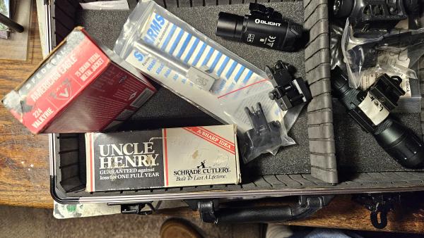 Have large number of pistol,rifle AR red dots and lights ($15-$50), 224 Valkyrie ammo($18), new in box Uncle Henry LB7 Lockback($70), like new Olight Valkyrie TURBO LIGHT($90), Storm Lake drop-in barrel Glock 23 to 357 Sig($90), AR metal flip-up sights front and back ($29), TulAmmo 7.62x54R 148gr FMC ammo($15) and much more. Text, Phone 270 331-2241 Be legal in Ky Thanks for looking |