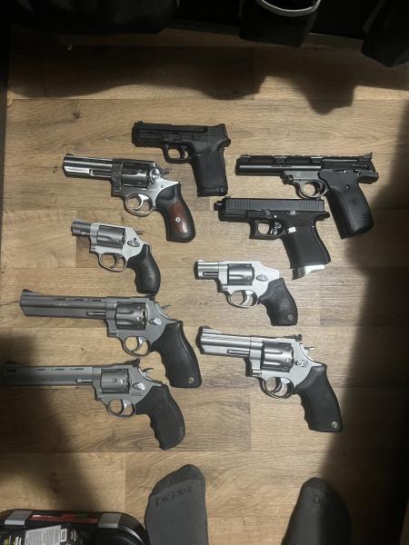 | Smith and Wesson EZ shield .380 $400 -Smith and Wesson 22A .22LR $300 -Smith and Wesson airweight .38+p $450 -Glock 19 Gen 5 custom $1200 -Taurus hammerless .38 $350 -Taurus 8 shot .357 6” barrel $800 -Taurus 8 shot 4” barrel .357 $800 -Taurus tracker 6.5” barrel .357 $550 -Ruger GP100 .38 $650 No trades cash only Open to reasonable offers as well Text preferred 27087three96two7 Thanks for looking |