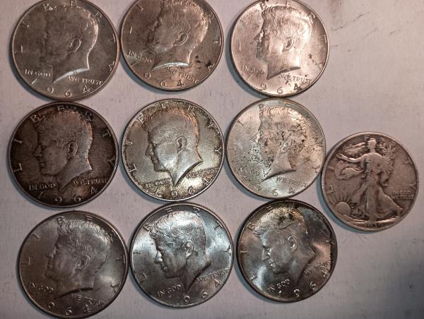 | 10 Kennedy Half Dollars 1964 Silver Coins under spot | |||
