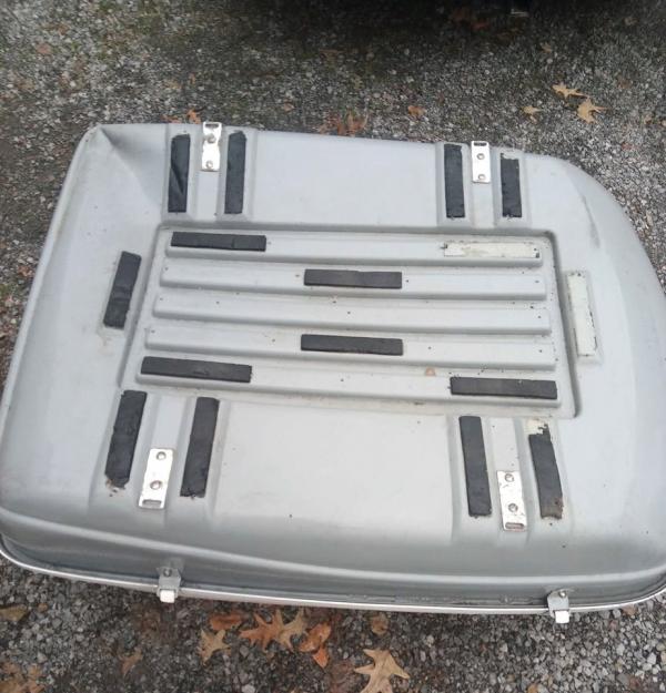 | Measures approximately 47 x 33 inches. There is a small dent on the bottom that I didn't notice until I looked at the pictures. It probably can be pressed out. Does not come with the straps. Walmart sells Hyper Tough Lashing Straps for $5.48 that might work with this. It has the four attached metal pieces the straps go through. This is a good item to have if you plan on traveling for the holidays. It goes on the roof of your car, SUV, van, etc, for storage. Freshly cleaned. Just message me with a time you'd like to view/buy at 270-206-2816. Located in Gilbertsville. |