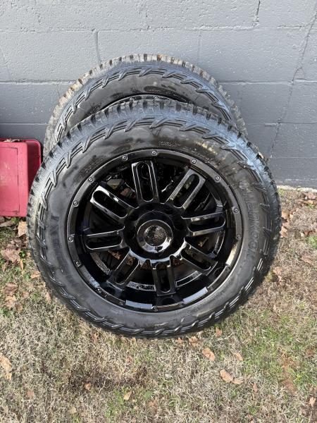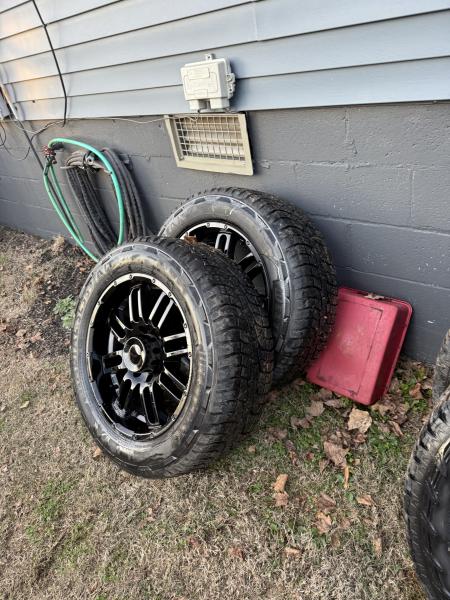 | 285/55/20 used truck tires that drive and ride great, wheels are in good shape, one of them was repaired as seen in photos, make a nice set of wheels and tires, also have 2in wheel spacers and lug nuts. Call or text 2 7 0 6 2 5 5 3 5 2, located in Princeton,Ky. 450 obo or trade, wheels came off 08 Chevy 3/4 ton 4x4. Pattern is 8-6.5. Tires are really good. |