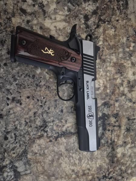 | Browning black label 1911 in 380 acp. Great shape, $500 cash or consider trades. Call or text 2709772875 |