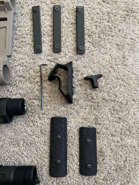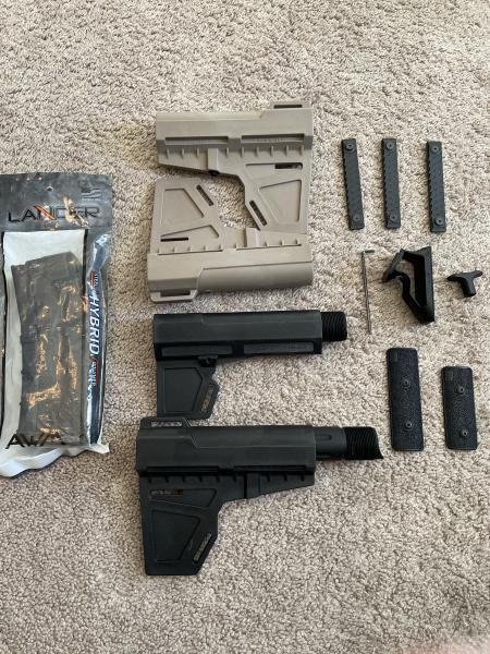 | Lancer 30 Round Magazine/ 3 KaK Pistol Braces with Buffer Tube old style/ 1 KaK Pistol Brace with buffer tube newer style/ some skins for Keymod rail/ Finger stops for Keymod. 2708165066 |