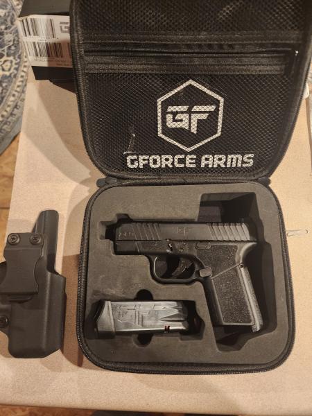 | G FORCE Rapture 9MM, new condition, shot very little, shoots perfect, fiber optic sights,cut for red dot,with IWB HOLSTER $250,text at 364-444-6582 |