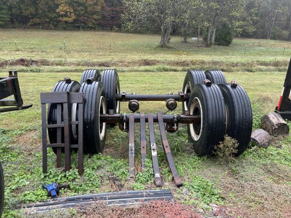 | Good set of axels, with springs and saddles. 24.5 wheels and good tires. Come out of a log trailer.2705080119 |