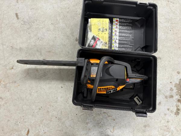 | Poulan Pro chain saw model SM4218AVX with an 18 inch bar. I only used it for about 2 hours and no longer need it. Comes with the hard case and all the manuals. I have more pictures, email if you want more pictures. |
