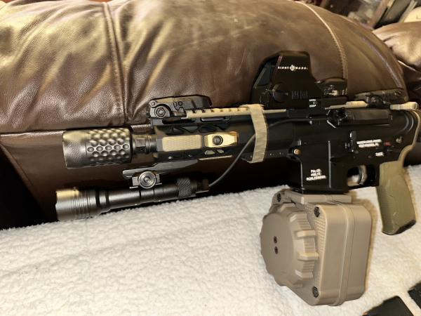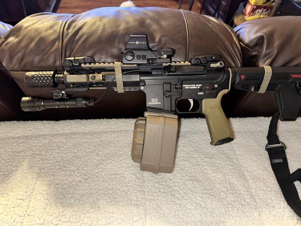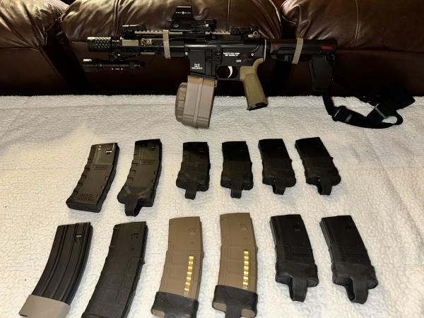 | I have for sale a Super Nice PSA PA-15 Multi Cal AR Pistol Setup. This thing is tricked out to the max. Selling as a package deal. Pistol comes with everything pictured as well as a carrying bag (Not Pictured). You get the AR Pistol, SightMark Optic, Gun Light, all Magpul Accessories, 1 x 65 Round Drum Mag, 12 x 20 Round & 30 Round Mags (All Mags Loaded). Asking $1300 obo. I will consider trades / partial trades. Only firearms I'm interested in at the moment are Beretta 92 Series Pistols, 1911 Frame Pistols and .357 Magnum (2"-4" Barrels). I am not isterested in Shotguns or Hunting Rifles. If interested, call or text me (Text Preferred) at 270-703-3845. Send pics of anything you might be interested in trading. Thanks and have a great day!! Merry Christmas!! |