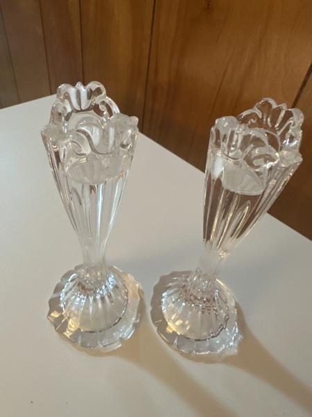 | VINTAGE ONEIDA RIBBED CLEAR CRYSTAL CANDLESTICKS | |||