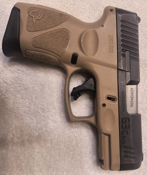| FOR SALE: GENTLY USED- Taurus G3c , 9mm. Earth tone Receiver. Very good condition, Shot only a few times!. Would Make A Great Conceal Carry Pistol. Price $235. 00. Will not ship, must pick up in Union City,TN. Will trade for certain pistols, & maybe certain long guns! CELL 731-504-9066 Call or text! |