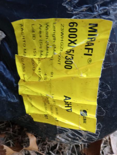 | 300 ft x 15 ft landscaping fabric. $130.00 Never been used, we went another route. 2707030026 |