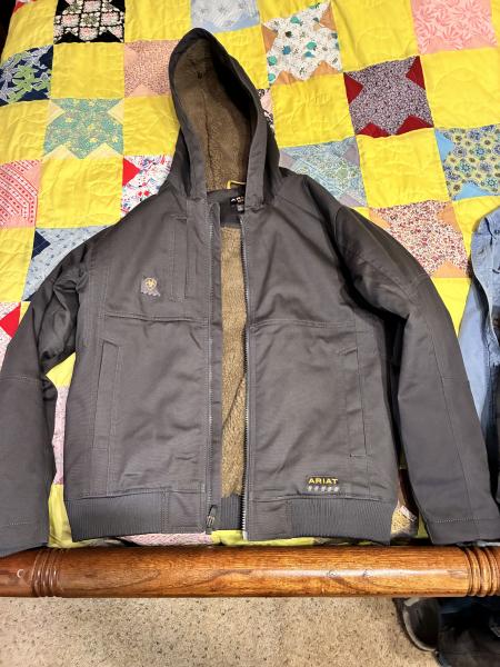 | Same as new shepa lined Ariat Rebar men’s coat grey wore 1 time a few minutes very nice .MEDIUM size $100.00 cost 139.99 +tx Text 2707051fivethreeeight No shipping. Pickup only . Could meet maybe . |
