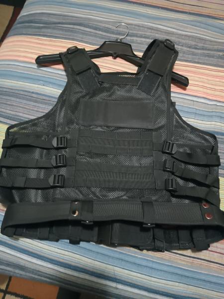 | Tactical vest that holds 4 Ar mags, 5 shotgun Shells, 4 handgun mags, a knife and I think a flashlight size large. |