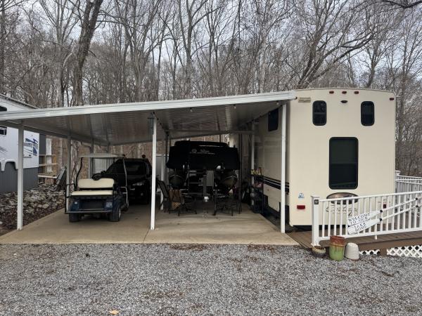 | 2021 Forest Creek Cottage 41 CL location in Kamptown Resort, 4 miles from Cadiz, water front lot, 20x30 concrete pad with aluminum cover, 8x16 Trex front porch, 3 slides, 4 doors stainless refrigerator, loft, golf cart and 2022 16/18’ Tracker pontoon available. Call or text 270-726-080eight |