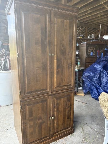 | I have a nice solid wood cabinet it’s 75” tall I used it for blankets and towels it’s in great condition very heavy call or text 270-559-9808 |
