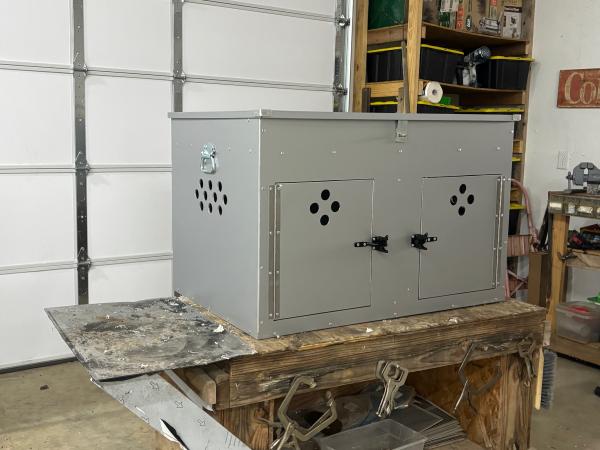 | I have for sale hunting dog boxes. 1 box is 48 wide x 40 deep x 24 tall includes a 4" storage 2nd box is 40 wide x 26 tall x 28 deep with a 4" storage 3rd box is 48 wide x 38 deep x 24 tall no storage. I can be reached at 270 970 7541 for more information |