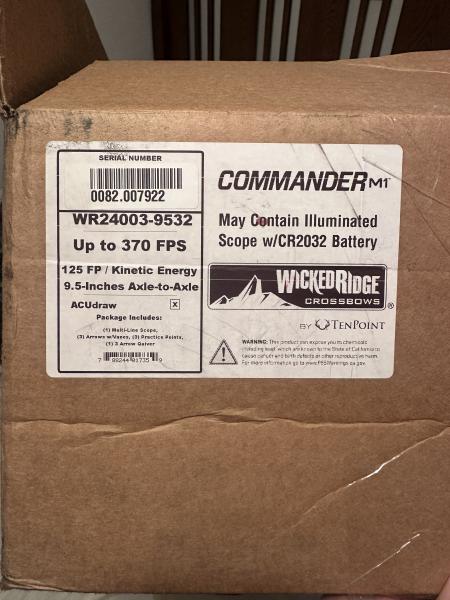 | Brand new never taken out of the box didn’t have time to go so my loss is your gain paid$650 Tenpoint Wicked Ridge Commander M1 Crossbow Package Acudraw Crank Peak Camo comes with everything u need to get started. $550 text me at 270-601-3105. |