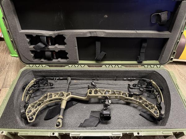 | Mathew’s V3X 29 in ambush green Matching Mathews 5 arrow web quiver Matching Mathews stabilizer bar Mathews axcel fixed 5 pin bridge lock sight Mathews QAD drop away arrow rest Mathews SCS System SKB hard side case Has 70# mods in it right now Bow is loaded and ready to hunt 1000$ or would trade for Mathew’s bow with longer riser Text preferred 1270-four93-172zero |