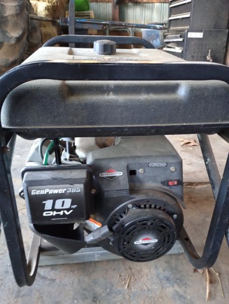 | GenPower 6250 generator with a 10 horse power Briggs and Stratton engine. Runs great and works properly. We just went for a smaller type generator. 2707030026 $185.00 |